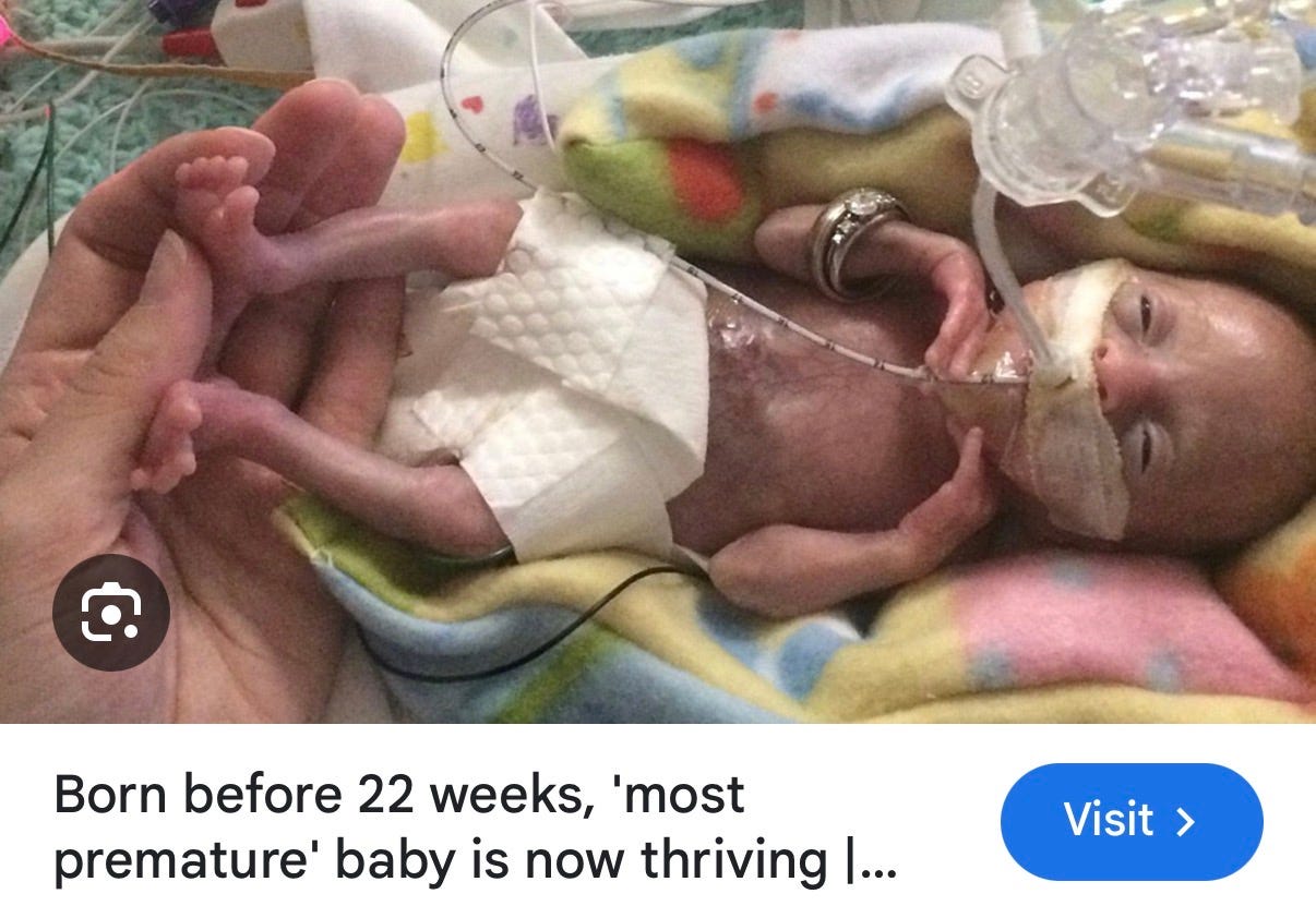 • Baby was reportedly born developed enough to be recognized and held.